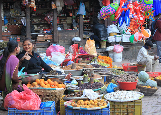 カトマンズ旧王宮広場、少女の生神クマリの館にご案内。地元市場通りインドラチョーク、アサンもぶらり歩きするお勧めコース。