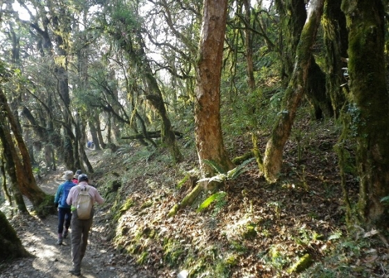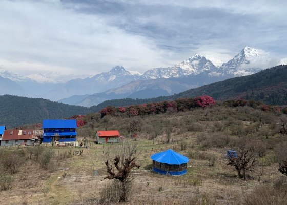 ラリグラス(石楠花)の森をゴレパニへ。アンナプルナ・サウス(7219m)、ダウラギリⅠ峰(8167m)などのヒマラヤ展望もお楽しみください。