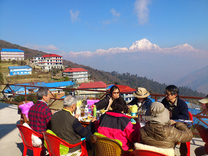 朝焼けのヒマラヤ展望をお楽しみください。朝食後、バンタンティへ向かいます(歩行2時間半)。