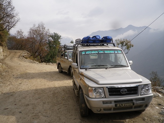 迎えの四輪駆動車にてポカラへ(3時間)。