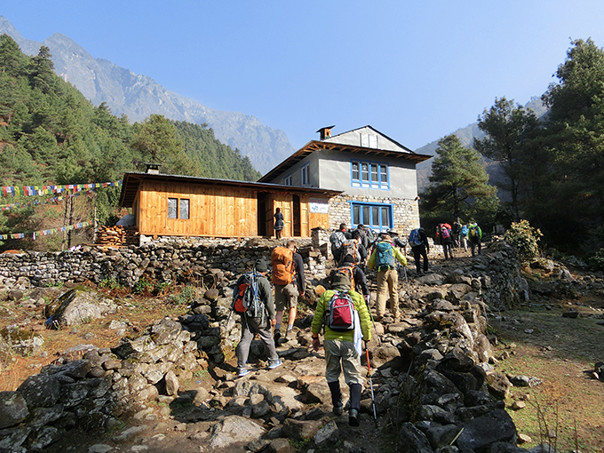 ルクラから歩いてホテルへ。帰りはヘリコプターで一気に下山!
