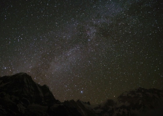 周囲を巨大なヒマラヤに囲まれ、さながら筒の中に収まっているかのようなBC。夜になるとまさにプラネタリウムのような素晴らしい星空が展開されます。