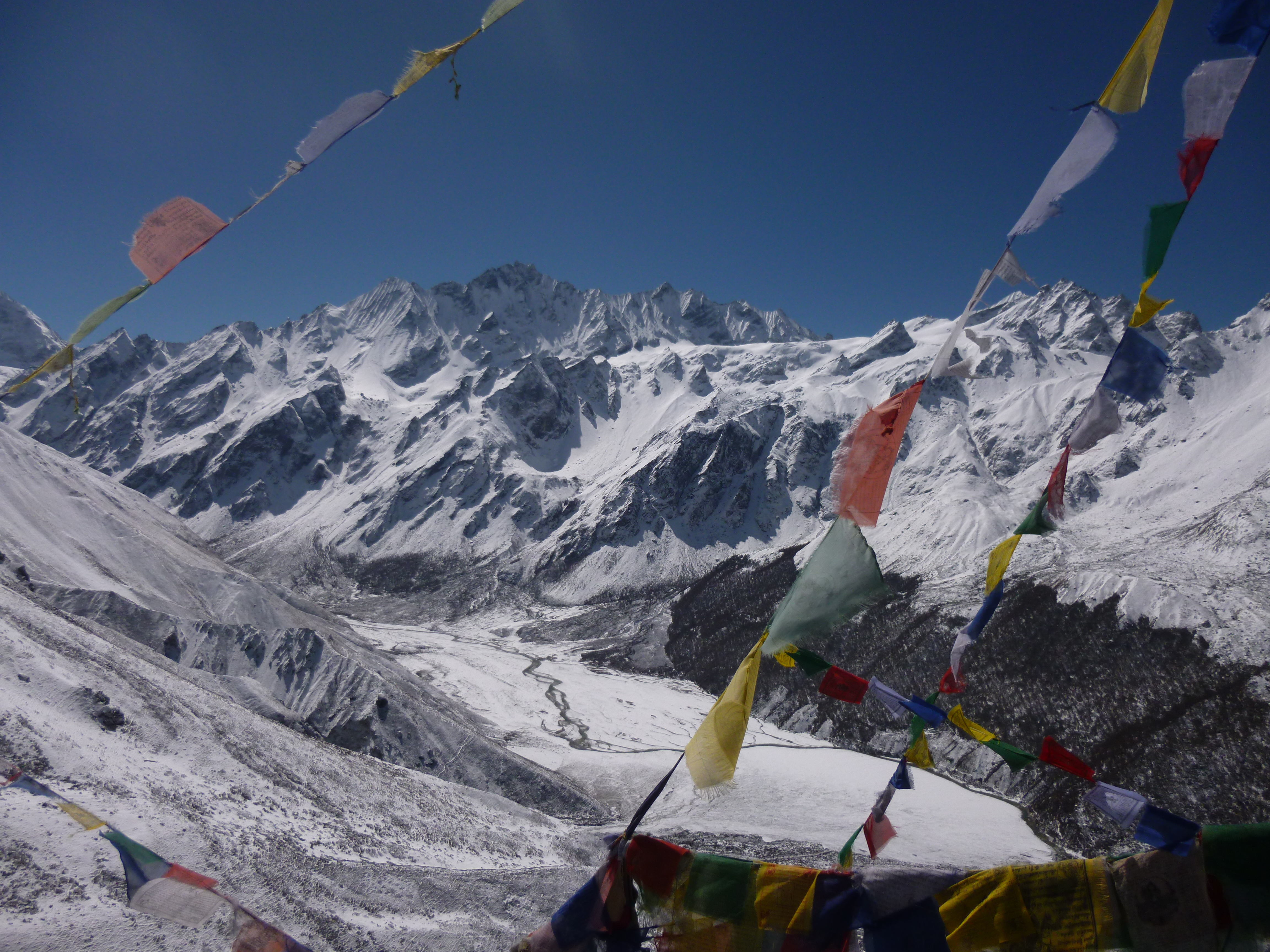 ガンチェンポ(6,387m)、ポンゲンドプク(5,930m)など山々の展望をお楽しみください。