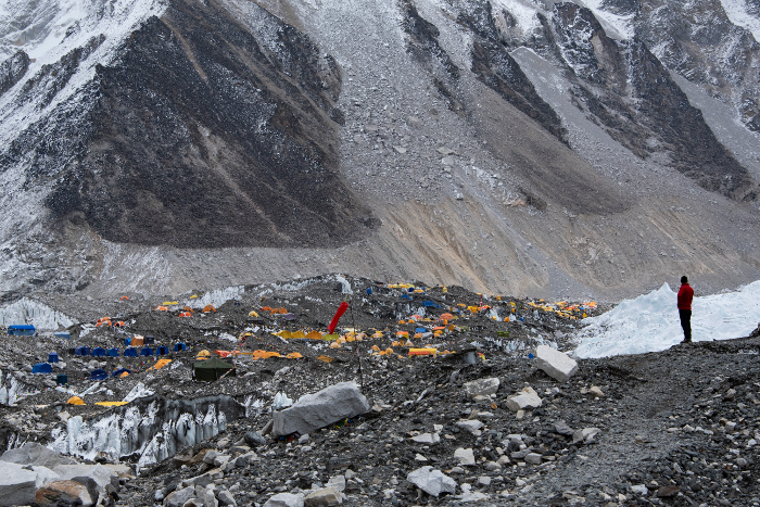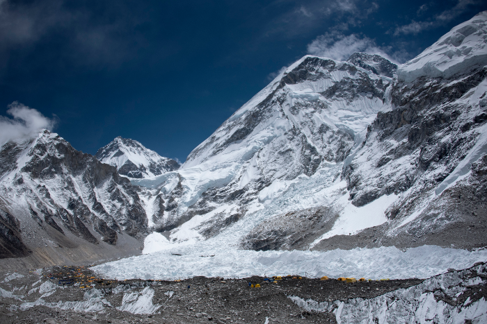 エベレスト登山シーズンはプレモンスーンの春、登頂日はモンスーン直前の5月中旬になります。いつもは氷河と堆積土砂だけのエリガがベースキャンプとなり、意気軒昴の各登山隊で賑わいを見せます。特別な時期にEBCへ足を踏み入れてみましょう。下から見上げるエベレストはここだけの展望です。