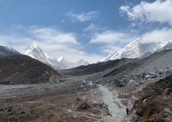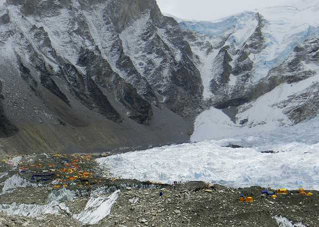 クーンブ氷河のモレーン沿いを遡りエベレスト・ベースキャンプ(EBC)へ(歩行往復5時間)。