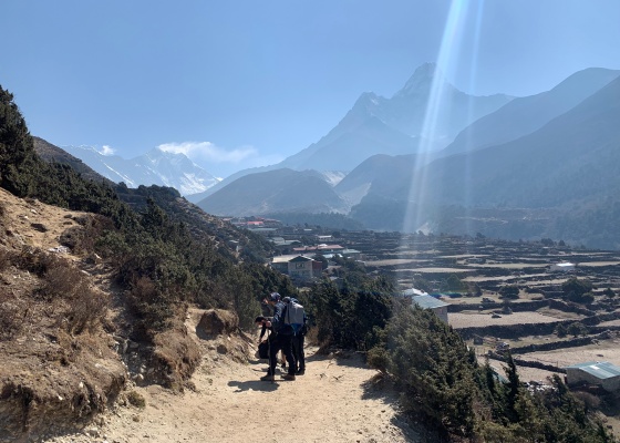 シャンボチェの丘に建つホテル・エベレスト・ビューを経て、キャンズマへ(歩行5時間)。ホテル宿泊も可能(要・追加費用)